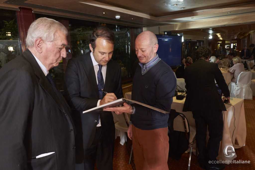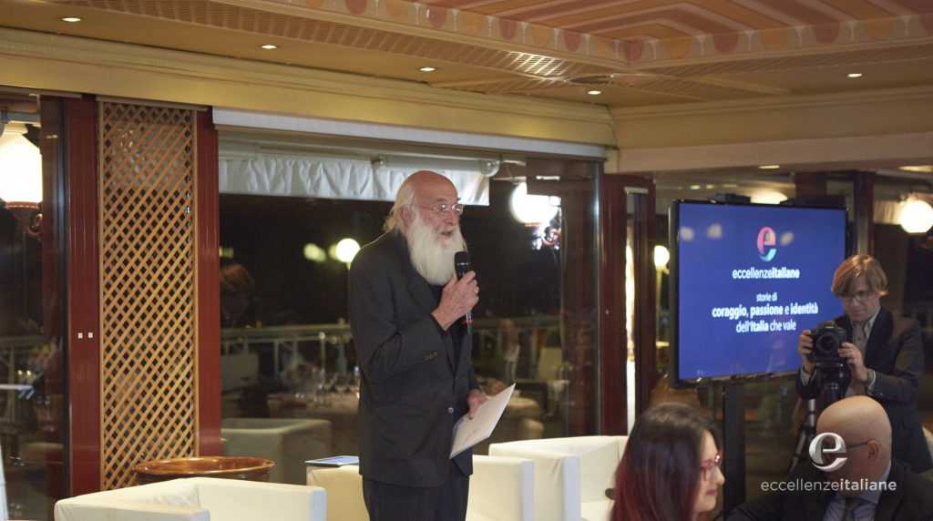 La serata del Galà, dopo l’iniziale intervento del Presidente Tagliaferri e l’illustrazione del progetto da parte del fondatore Muscari, ha vissuto il saluto agli altri premiati e agli ospiti del padrone di casa Heinz Beck “non c’è altro paese al mondo che ti dà tutto questo”. Quindi sul palco, insieme al conduttore della serata Piero Muscari, si sono alternati Rossana Luttazzi “il libro di questa sera è come una melodia che Piero è riuscito a realizzare come chi compone le melodie, tasto dopo tasto, cercando l’accordo giusto, l’incontro giusto” e, a seguire, gli artefici delle dieci storie, ciascuna accompagnata da filmato e ad ognuno con la consegna del premio “Il volto delle Eccellenze”.