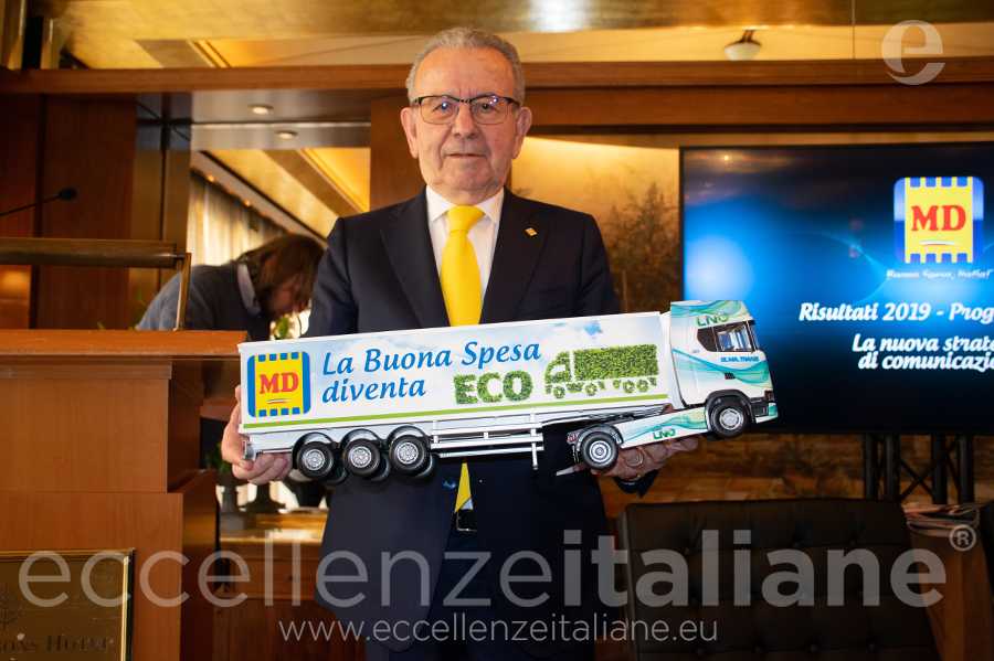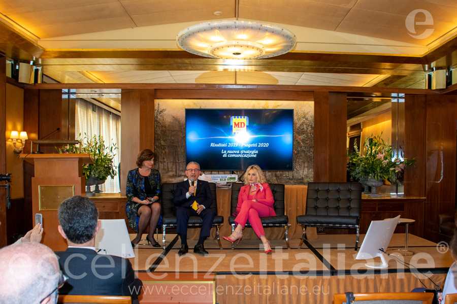 Patrizio Podini, patron dell’azienda, comunica durante la conferenza stampa i risultati di fatturato che nel 2019, che si chiude con una crescita del 10% delle vendite nette rispetto al 2018, e il piano di sviluppo 2020, che prevede l’apertura di oltre 40 nuovi punti vendita a format (32 diretti e 10 affiliati) su tutto il territorio nazionale, cui continuerà ad affiancarsi la ristrutturazione di 40 di filiali. Durante la conferenza stampa è stato presentato anche il nuovo Direttore Commerciale Giuseppe Cantone, che ha spiegato come il Cav. Podini lo abbia convinto ad accettare l’incarico a Napoli nonostante la sua intenzione di fare carriera a Milano. Poi il direttore generale Piermario Mocchi ha presentato il progetto sostenibilità con nuovi investimenti e decisioni che tendono a salvaguardare l’ambiente e a contribuire alle politiche di sviluppo più green, spiegando che sul sito di Md sono stati coinvolti i giovani, chiedendo loro che cosa significa la parola sostenibilità.