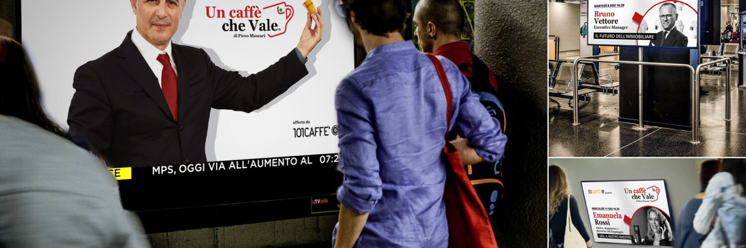 Telesia gestisce, infatti, i canali della GO TV destinati a luoghi pubblici ad alta frequentazione: metropolitane, treni, bus e aeroporti. Un Caffè che vale andrà in onda nella metro in tagli da un minuto, mentre negli aeroporti in tagli da tre minuti. Telesia (www.telesia.it), quotata all’AIM di Borsa Italiana da febbraio 2017, mediante i suoi network negli aeroporti (Telesia Airport), nelle stazioni metropolitane (Telesia Metro), a bordo dei bus e dei treni dei metrò (Telesia Bus e Telesia Train) delle principali città italiane, nelle aree di servizio Autogrill della rete autostradale (Telesia Highway), ha 5.000 schermi in 753 location e ogni settimana informa e intrattiene 34 milioni di passeggeri in tutta Italia, in contesti di elevata attenzione.